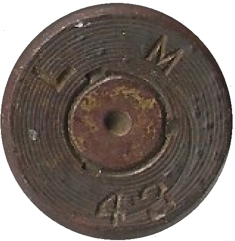 This undated casing is somewhat of a msytery. It was found near an airfield that was used by Finnish Air Force Brewster B-239 fighters during 1940-1941. Next to the airfield was a practice target, where fighter pilots trained to shoot. As Brewster had .50 cal armament, this cartridge was shot in that period of time. According to some Finnish sources, these cartridges were made by the Winchester Repeating Arms Company, so it is also shown in that category.