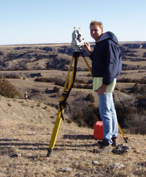 Jerry Penry and Larry Carpenter (on ridge in background) mapping the Merna B-24 crash site in November 2006.