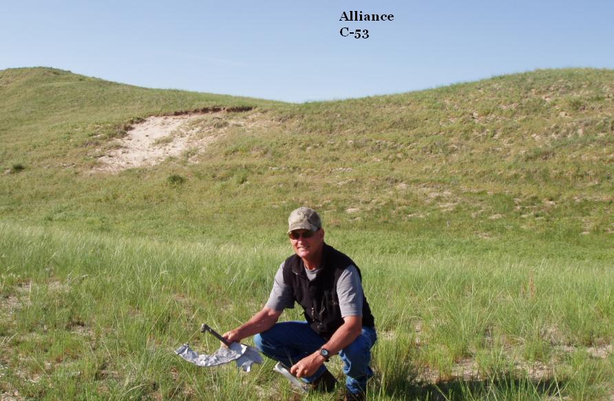 This site was visited on May 20, 2007, along with the assistance of the local landowner. Evidence of the exact crash site was found still laying on the top of the ground in the Sandhills.