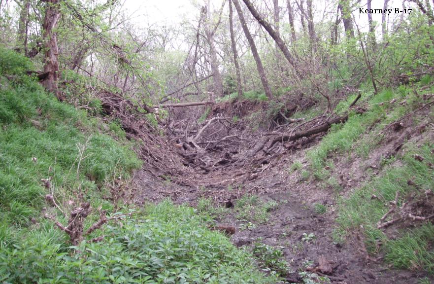 The site was visited on May 3, 2007, along with an older Kearney resident who used to farm the area. The exact site was verified with the discovery of wreckage in the trees along the creek bottom by using a metal detector.
