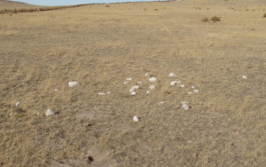 These stones were placed in the form of a cross in 1944 to mark the site. Cattle have since scattered them.