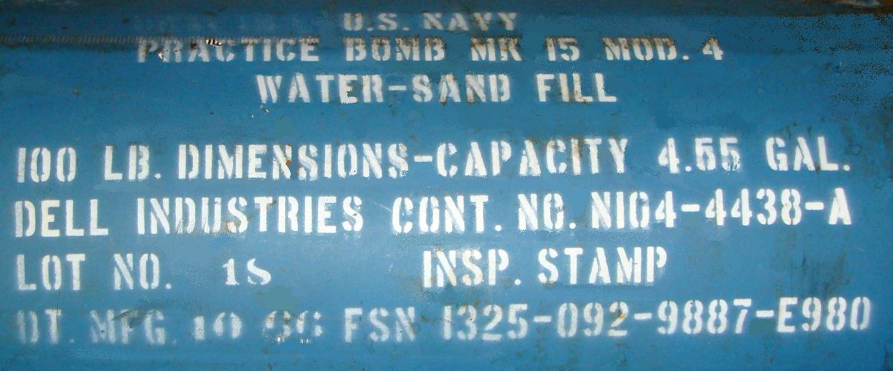 Typical stamping on the MK-15 MOD 4 practice bomb.
